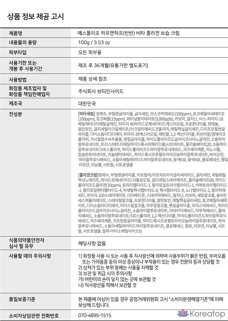 Увлажняющая сыворотка и крем Esfolio Half & Half Vita Collagen, 100 г, 1 шт.