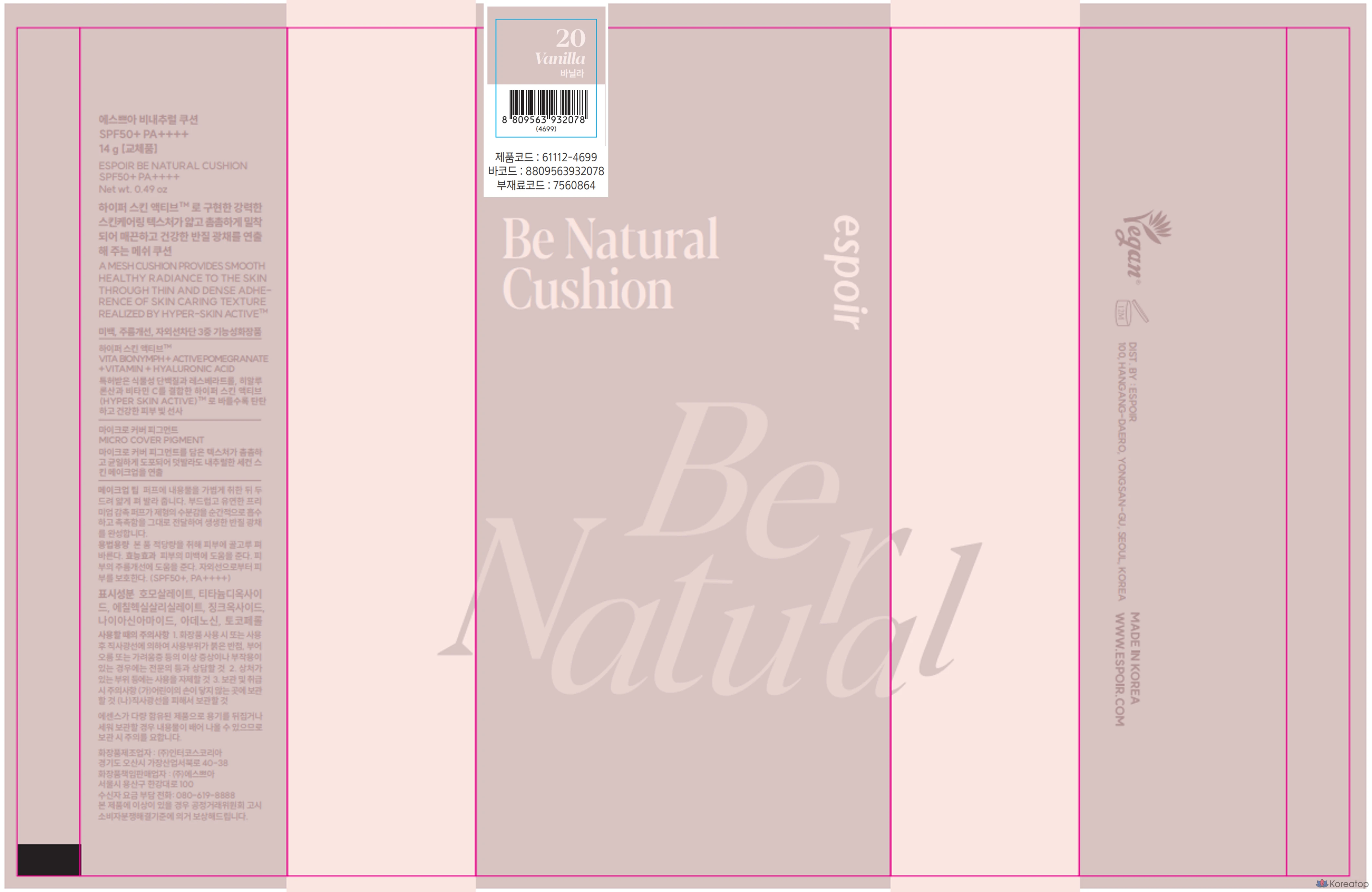 Espoir Benatural Cushion Refill 14г, №23 Бежевый, 1 шт.