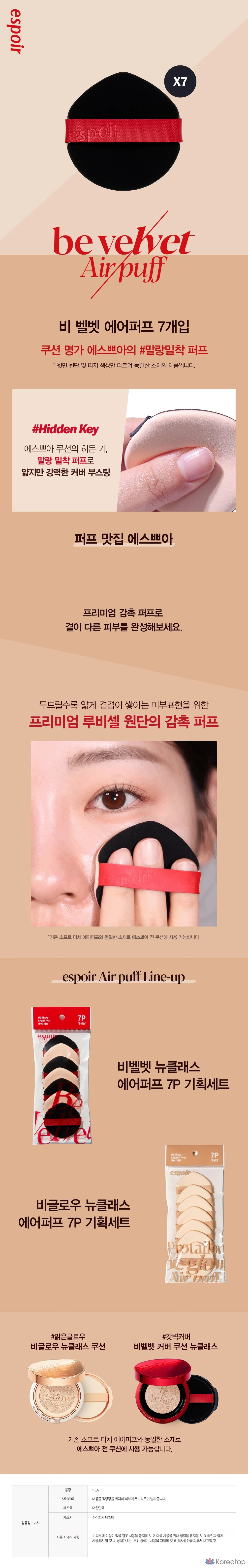 Набор для макияжа Espoir Bevelvet Air Puff, 7 шт., разные цвета, 1 шт.