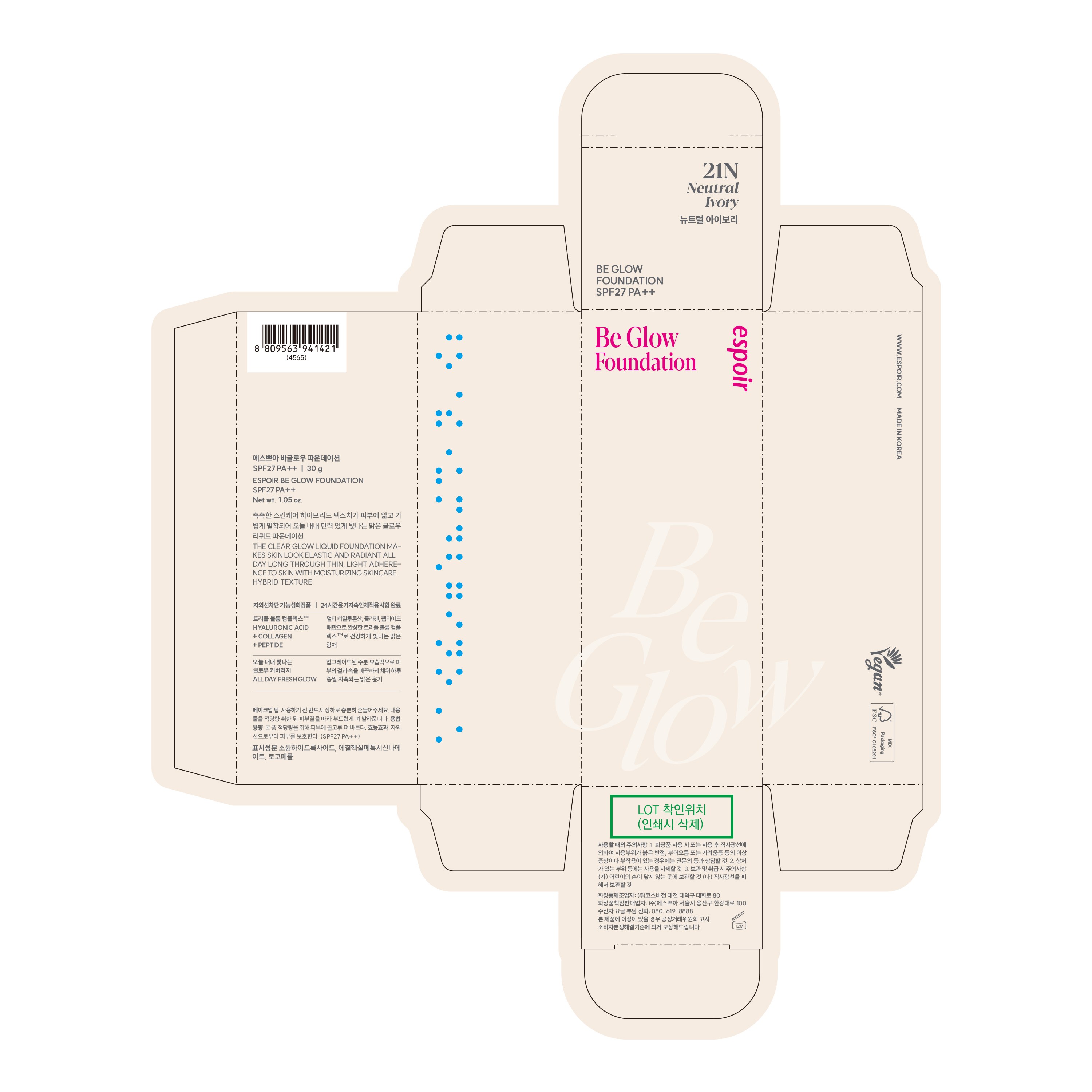 Тональный крем Espoir Biglow SPF27 PA++ 30 г, 1 шт., цвет 21N Neutral Ivory