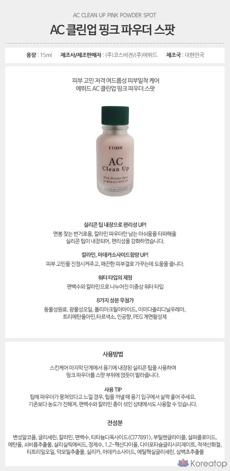 Очищающая пудра Etude House AC Clean Up Pink Powder Spot, 15 мл, 1 шт.