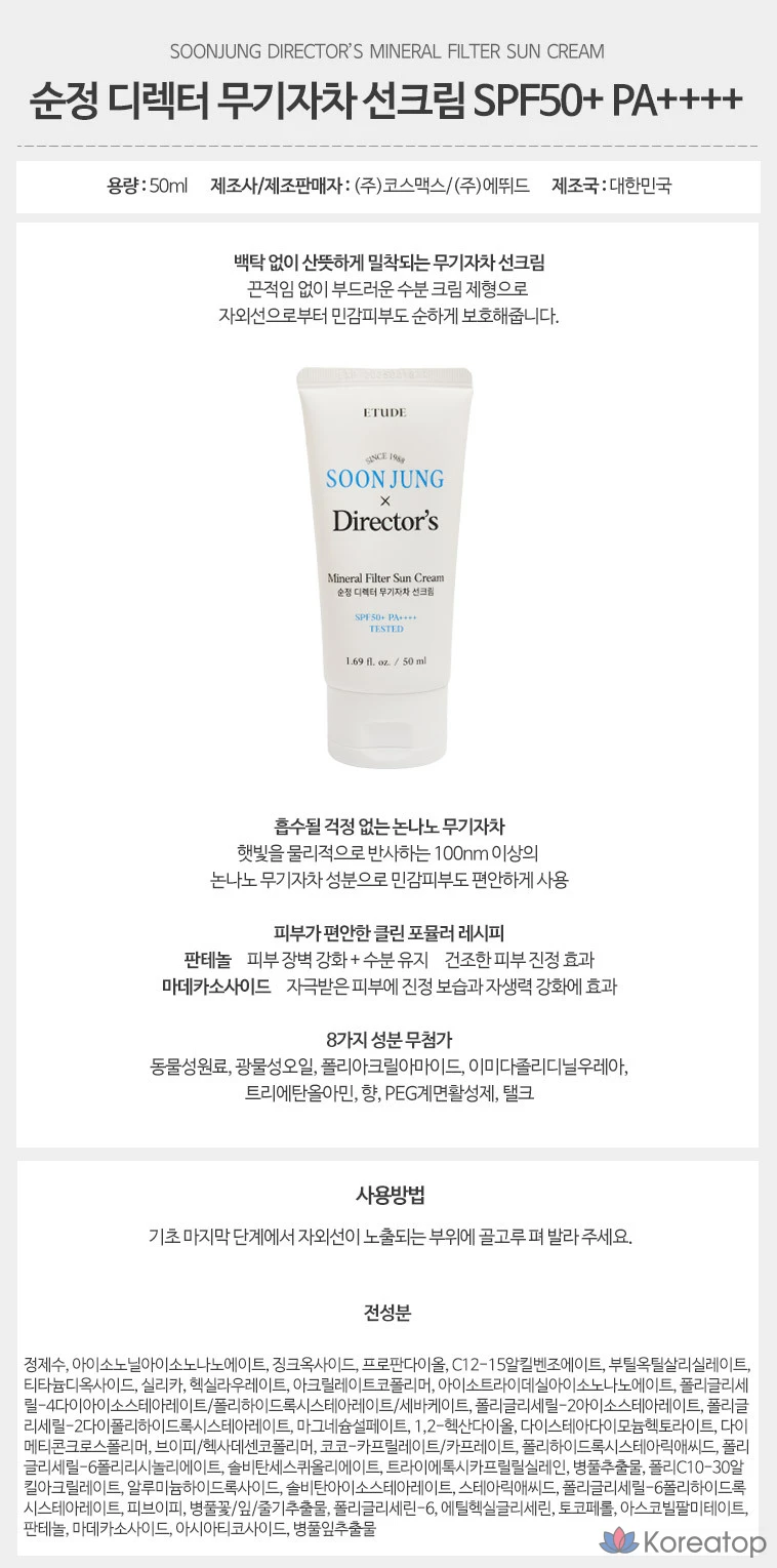 Солнцезащитный крем Etude House Soon Jung Director Mujijacha SPF50+ PA++++, 50 мл, 1 шт.