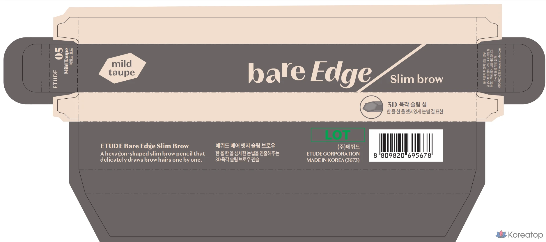 Карандаш для бровей Etude Bare Edge Slim Brow 05 Mild Taupe