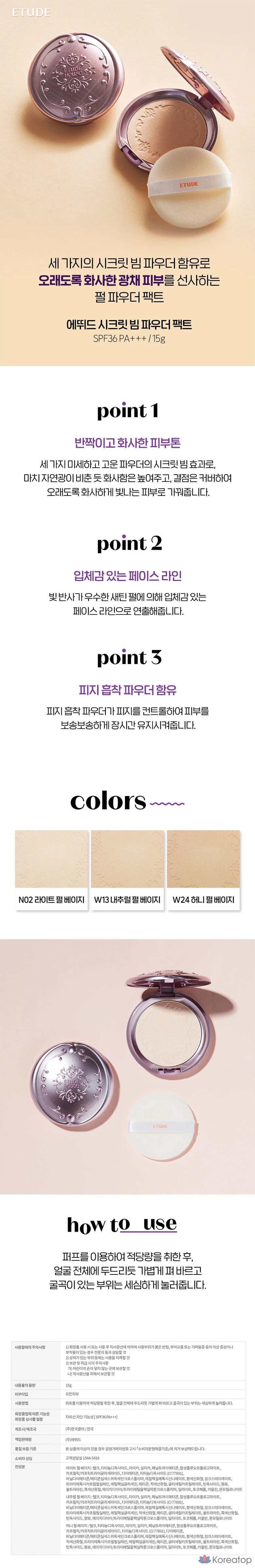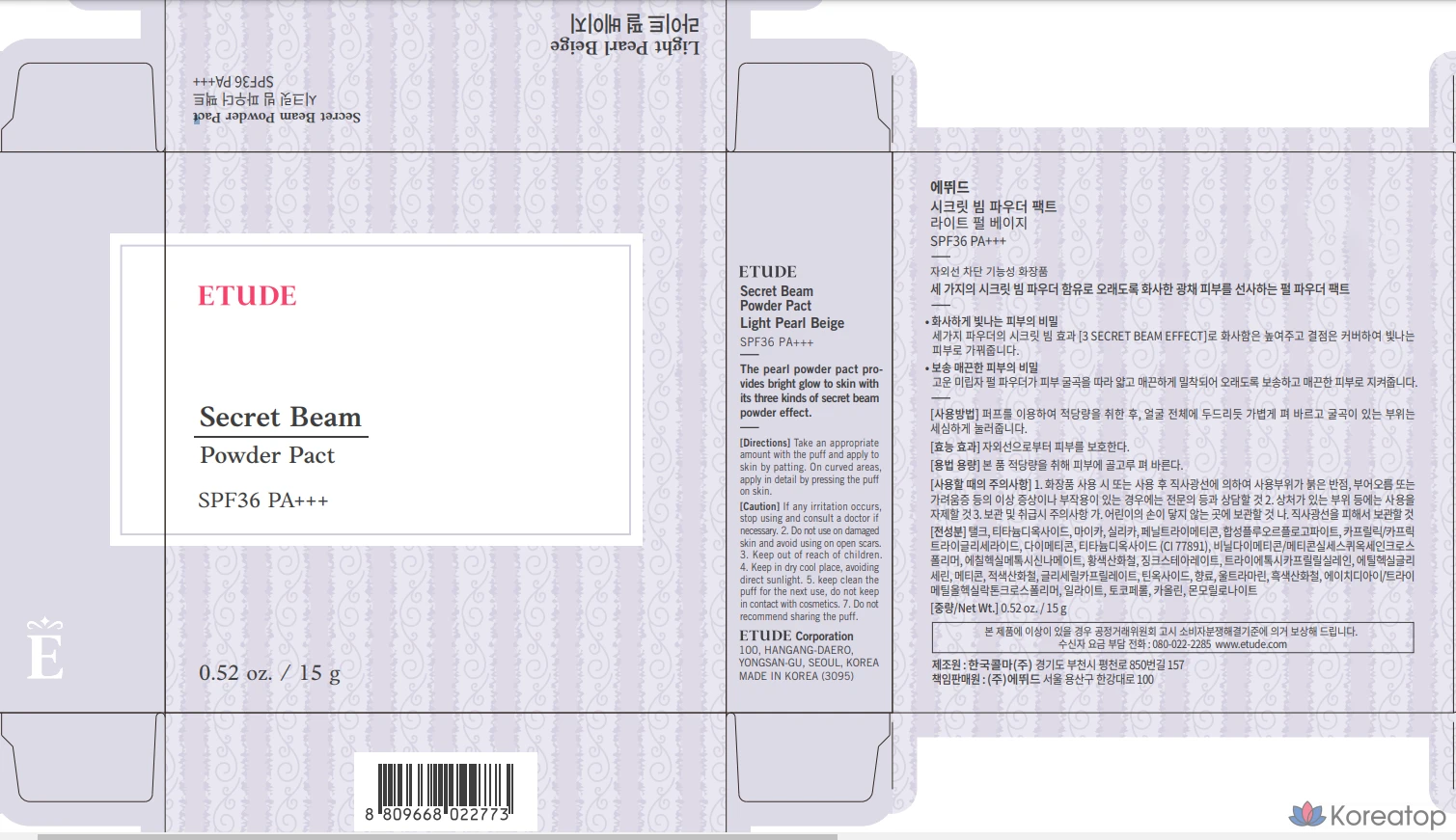 Пудра Etude Secret Beam Pact Powder SPF36 PA+++ NO2 Light Pearl Beige