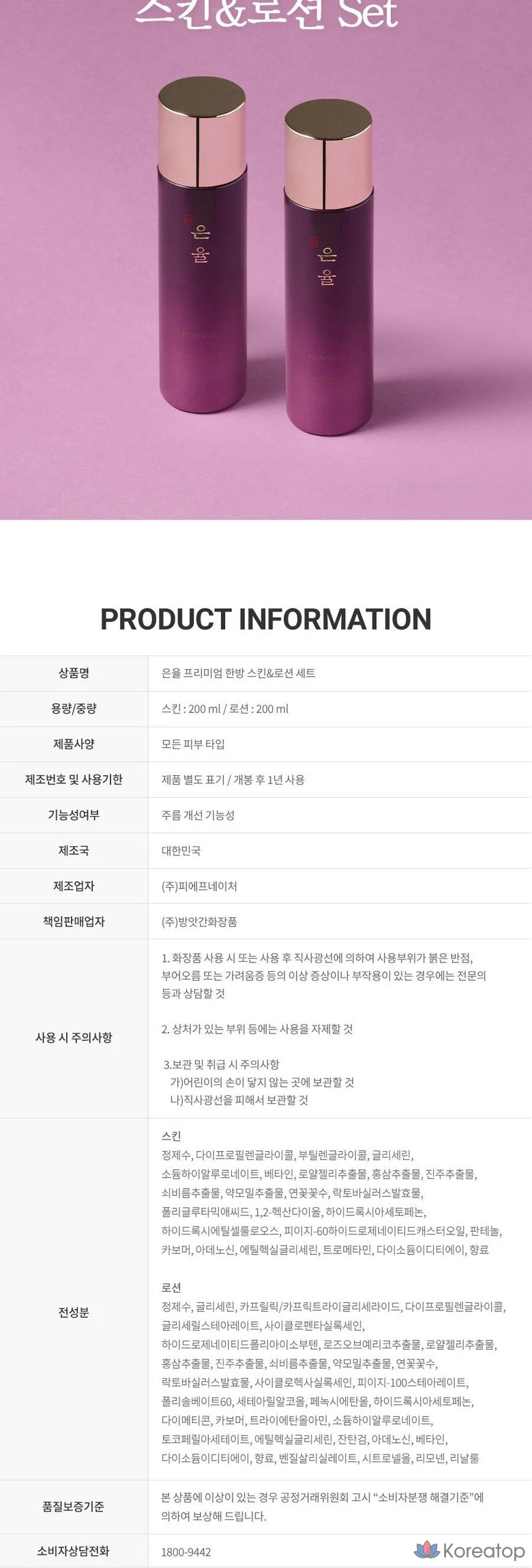 1 набор из 3 видов тоника, лосьона и крема Eunyul Premium Oriental, 150 мл, 150 мл, 60 г, 1 комплект
