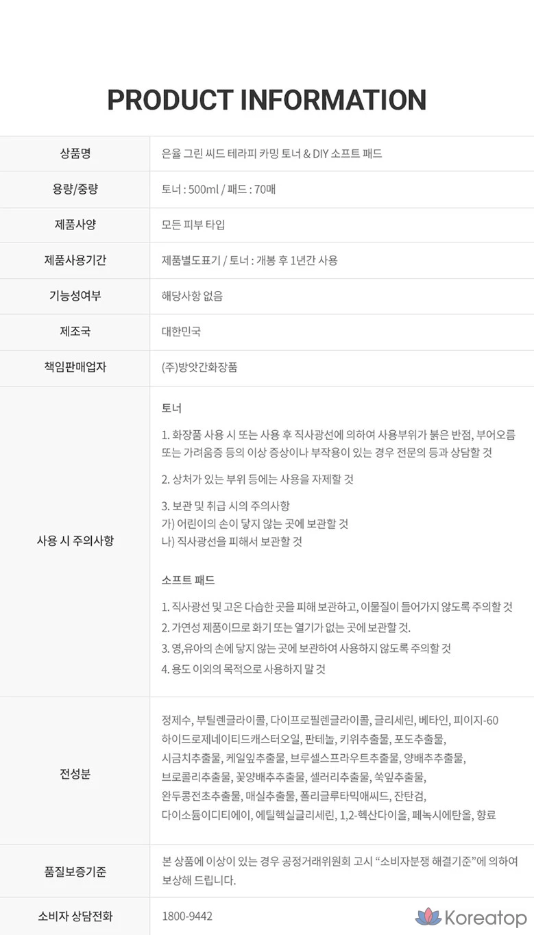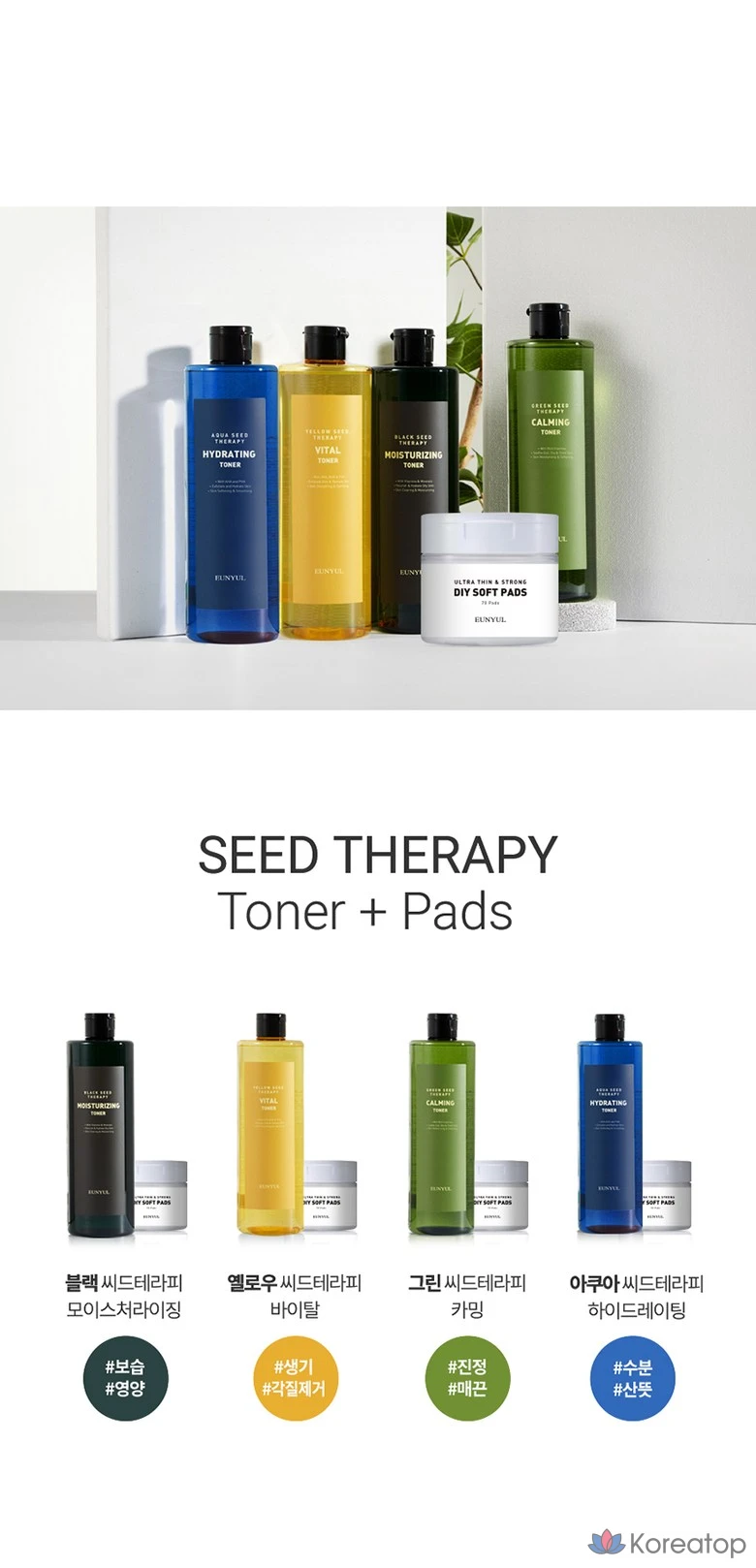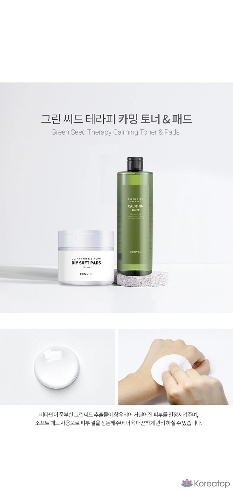 Тоник для лица Eunyul Green Seed Therapy Calming Toner, 500 мл, 1 x подушечка из 70 листов