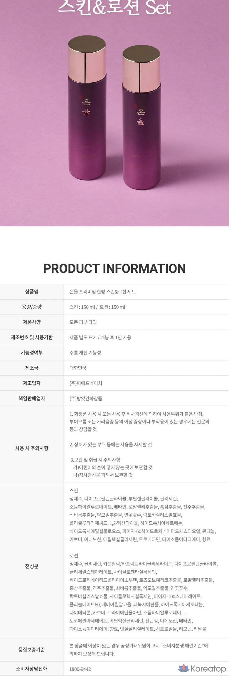 Базовый набор тоника-лосьона Eunyul Premium Oriental Medicine, тоник для кожи 150 мл, лосьон 150 мл, 1 комплект.