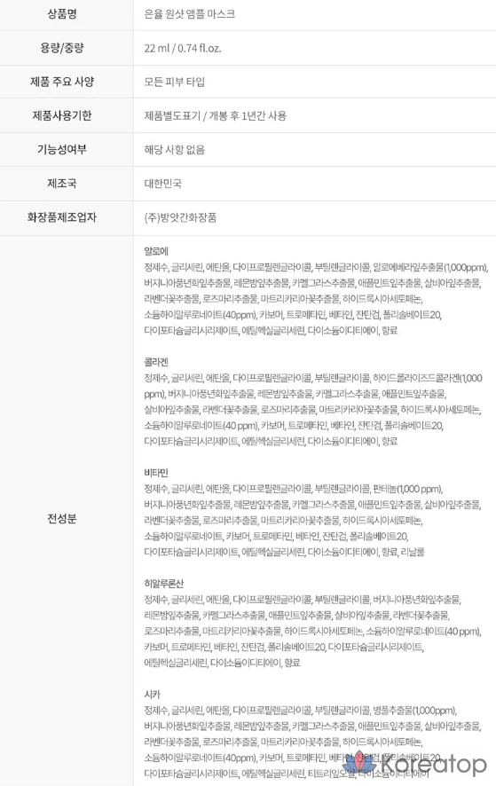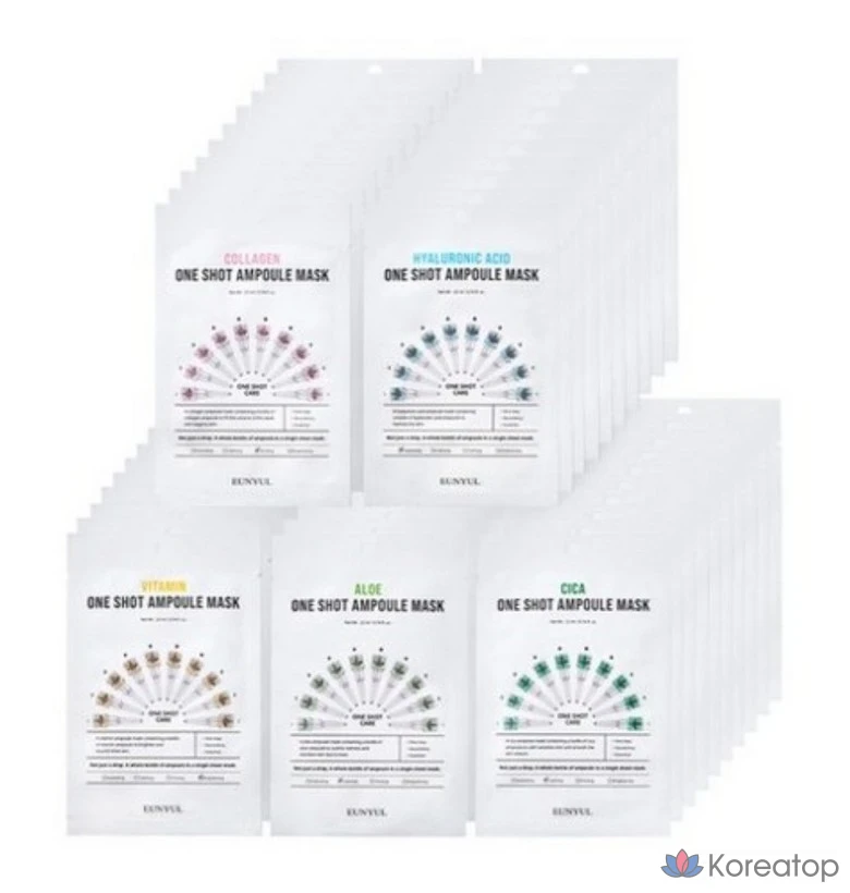 Набор ампульных масок Eunyul One Shot, 5 видов по 3 шт., 15 листов, 1 штука.