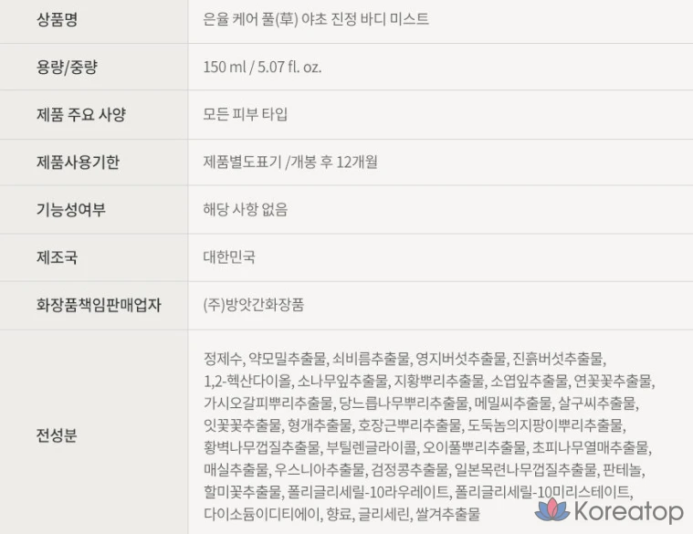 Успокаивающий спрей для тела Eunyul Care Full Wild Grass, 1 шт., 150 мл