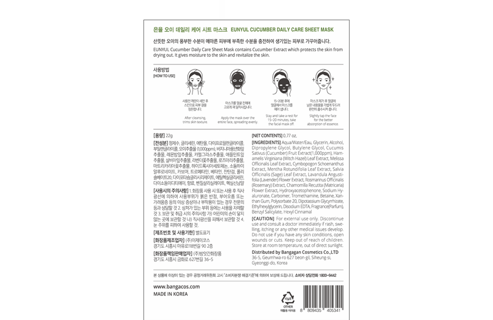 Тканевая маска для лица Eunyul Silver Cucumber Daily Care, 1 упаковка, 10 штук