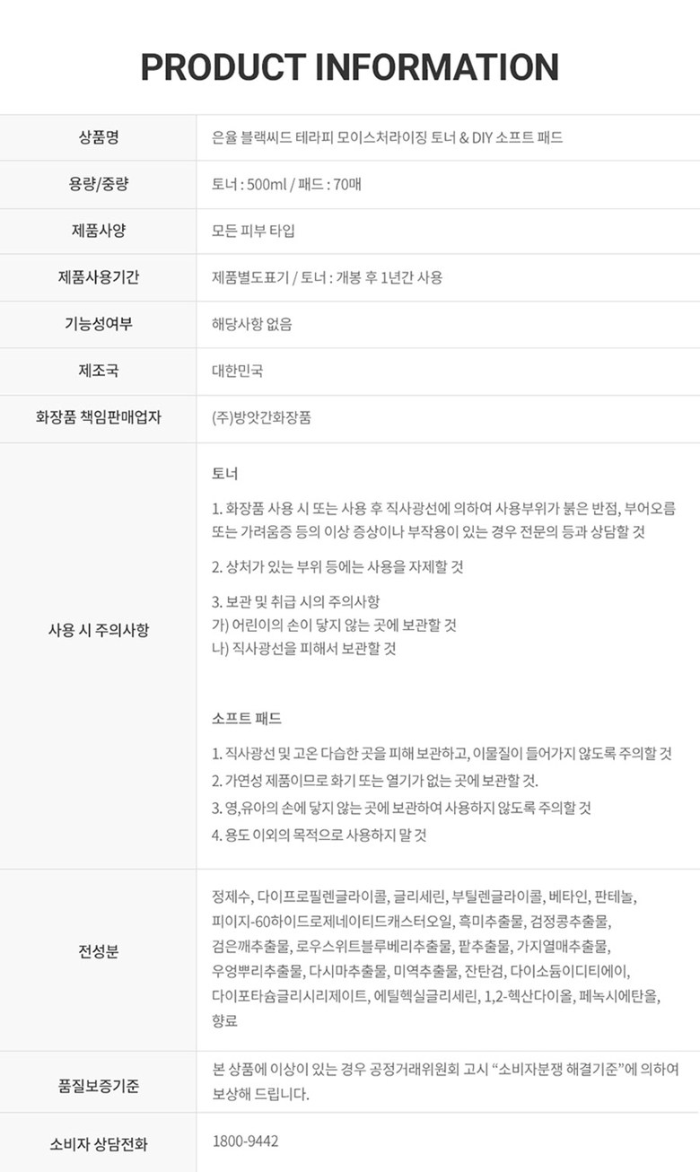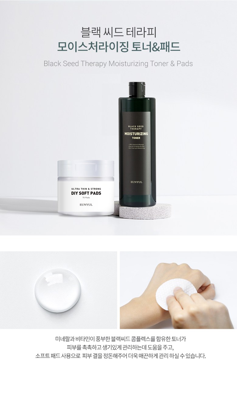 Увлажняющий тоник Eunyul Silver Black Seed Therapy + подушечки, 70 листов, 500 мл, 1 шт.