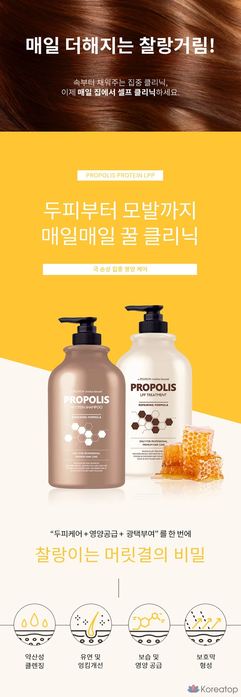 Шампунь с прополисом и протеинами для ежедневного ухода. 💫 Мягко очищает, укрепляя волосы по всей длине. Формула способствует восстановлению и придает здоровый блеск. Подходит для регулярного использования.