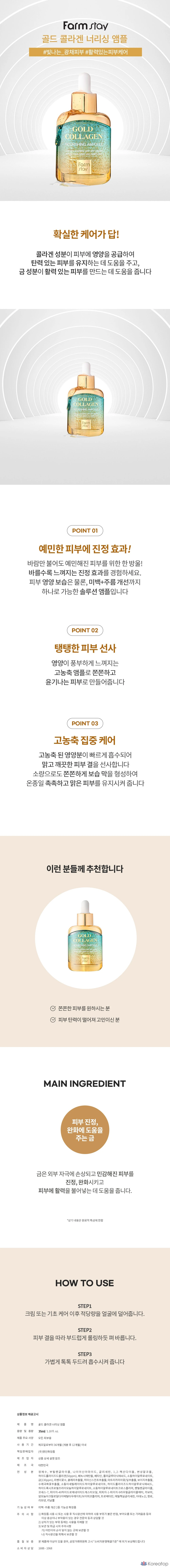 Питательная ампула с коллагеном FarmStay Gold, 35 мл, 1 шт.