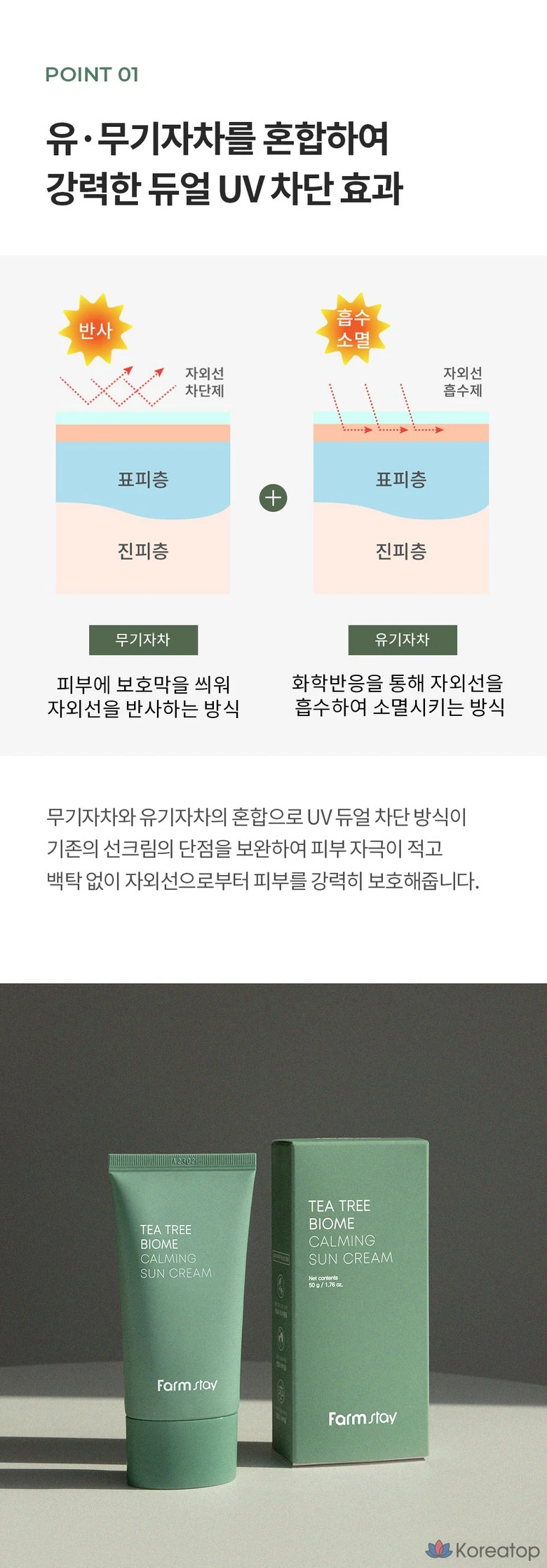 Успокаивающий солнцезащитный крем FarmStay Tea Tree Biome SPF50+/PA++++, 1 шт., 50 мл