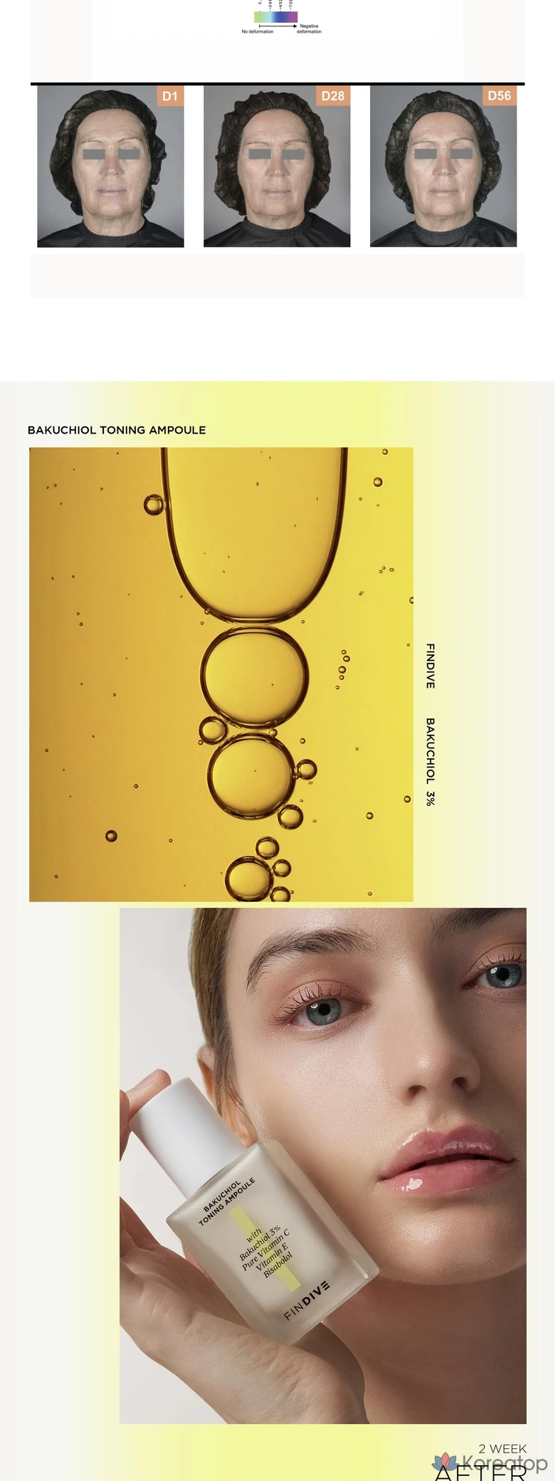 Ампульная сыворотка FINDIVE Bakuchiol Toning Ampoule, 30 мл, 1 шт.