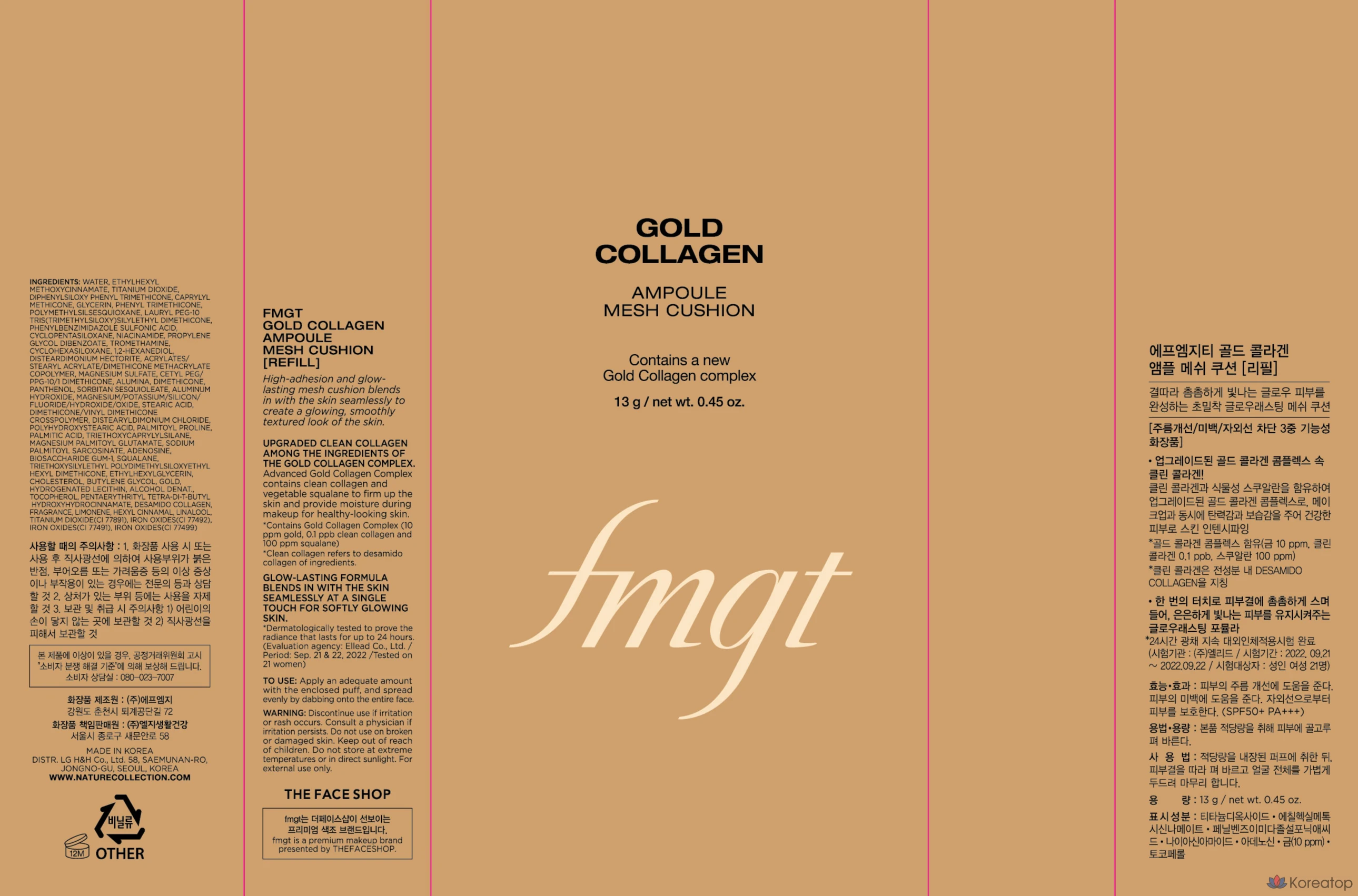 Крем-ампула FMGT Gold Collagen Ampoule Mesh Cushion, 13 г, сменный блок, 1 шт.