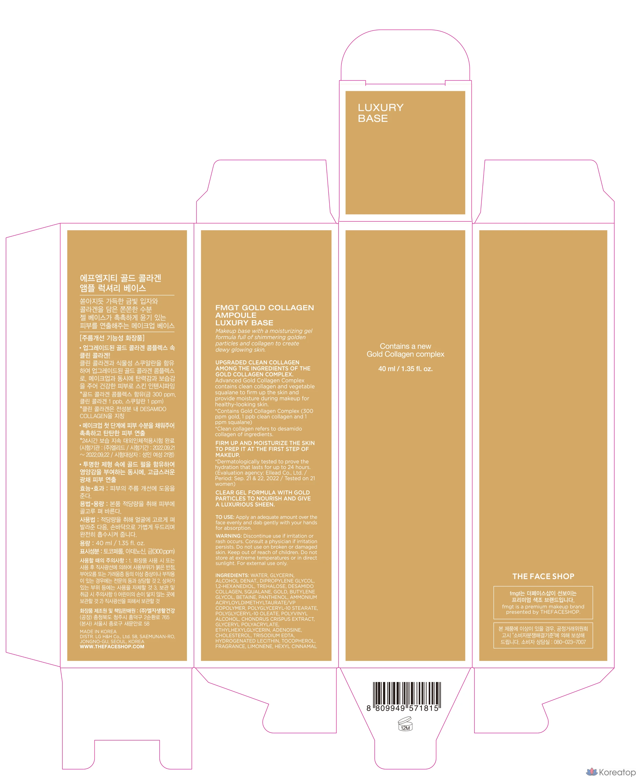 База под макияж FMGT Gold Collagen Ampoule, 40 мл, 1 шт.
