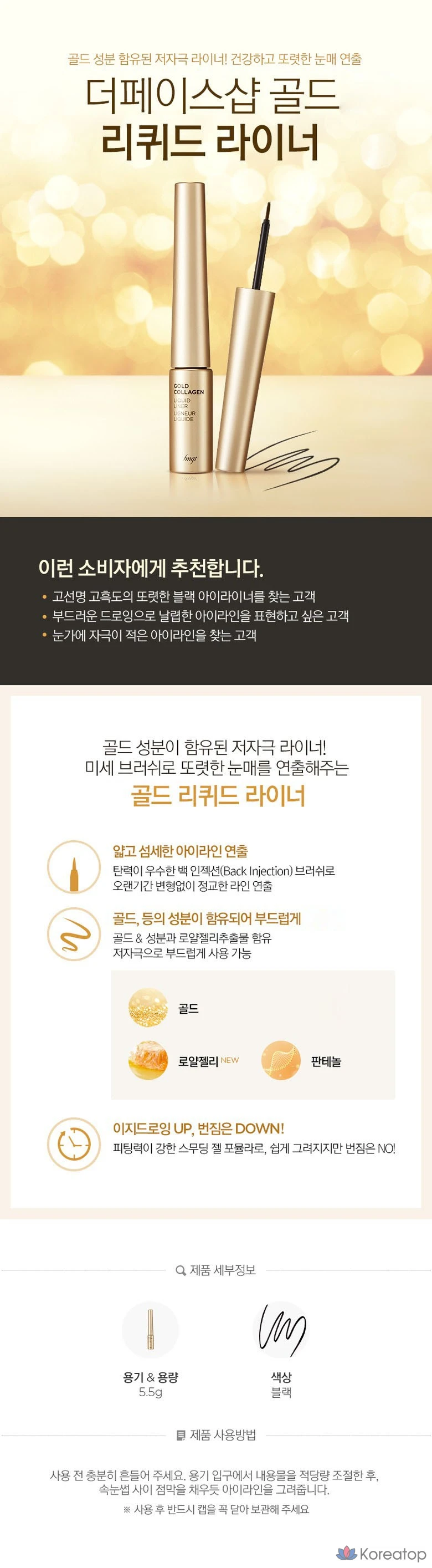 Жидкая подводка для глаз FMGT Gold Collagen Liquid Liner 01 Black, No. 1 Black, 1 шт.