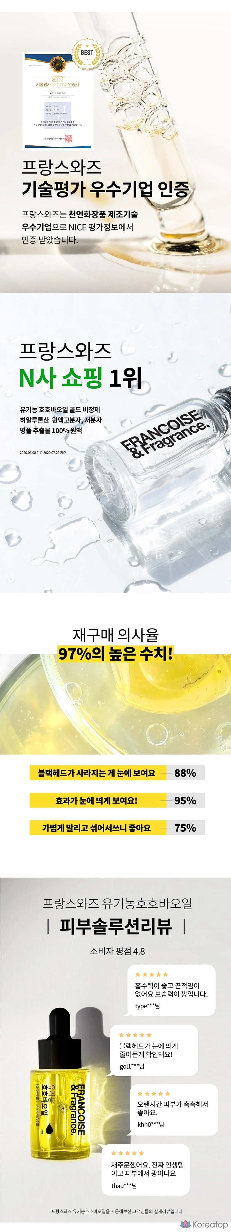 Francoise&fragrance. Premium Organic Baby Jojoba Oil Gold Unrefined 100%, 30ml, 1 шт.