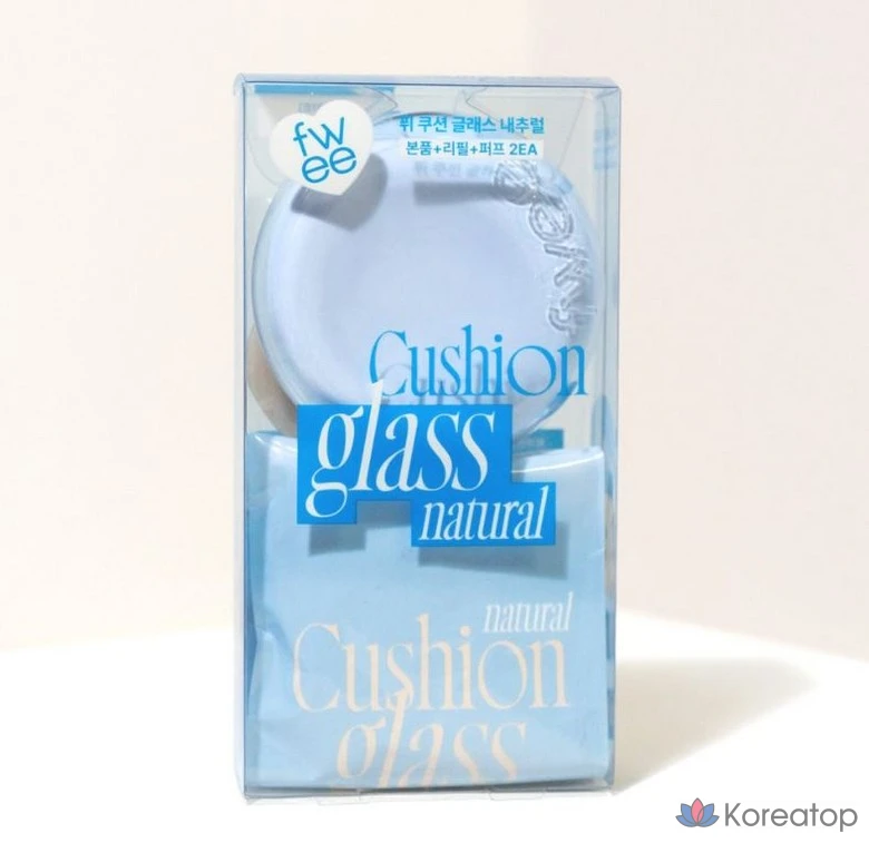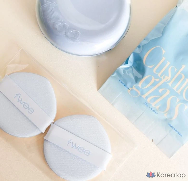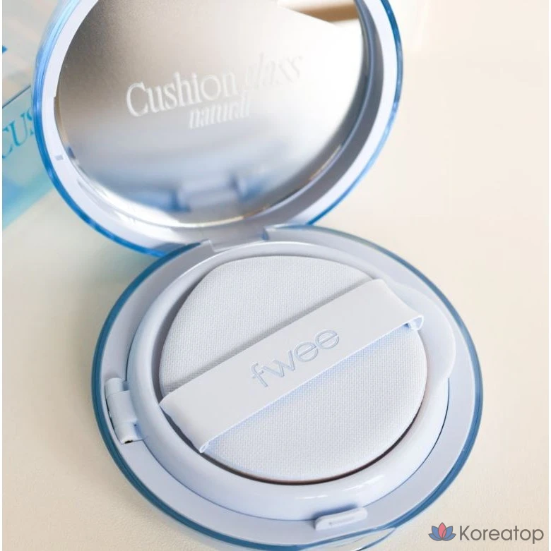 Набор для планирования макияжа FWEE Pew Cushion Glass Natural из 5 цветов (основной продукт + сменный блок + 2 дополнительных спонжа) Увлажняющий кушон с гиалуроновой кислотой и стеклянными шариками для сияющей кожи, оттенок 02 Nude (№ 22), 1 шт.