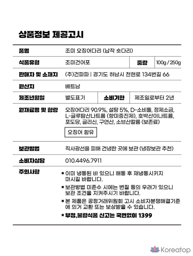 Более вкусная закуска из плоских кальмаров с короткими ножками Geonpapa