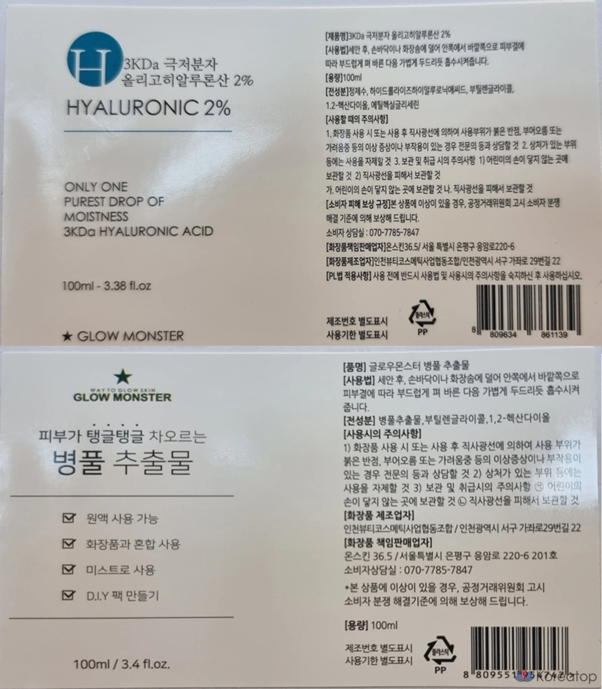 Glow Monster Экстракт центеллы азиатской 100 мл + 2% концентрат олигогиалуроновой кислоты 3 кДа 100 мл, 2 комплекта