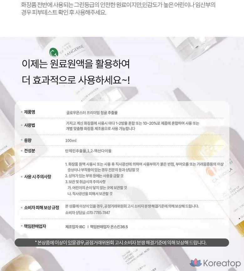 Glow Monster Premium Green Tangerine Extract 100 мл + 3 кДа олигогиалуроновая кислота 2% концентрат 100 мл, 1 комплект