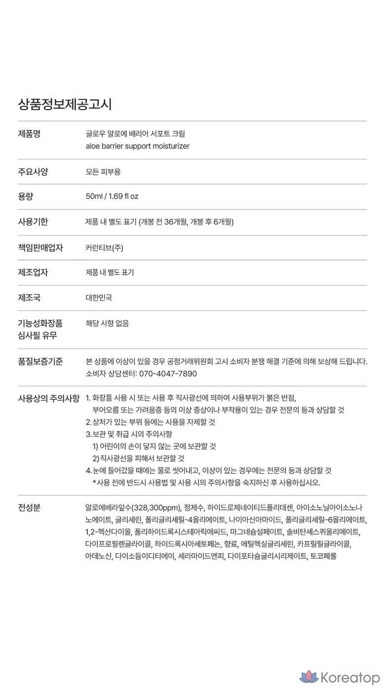 Крем для укрепления кожи Glow Aloe Barrier Support Cream, 1 шт., 50 мл