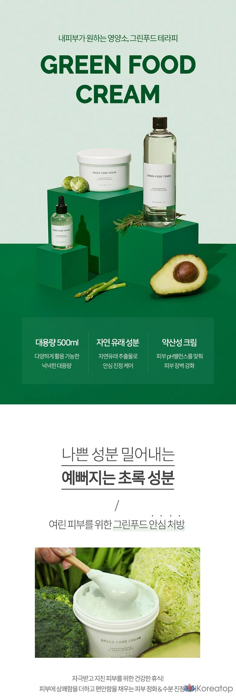 Увлажняющий успокаивающий крем Graymelin Moisture Soothing Green Food Cream, 500 мл, 1 шт.