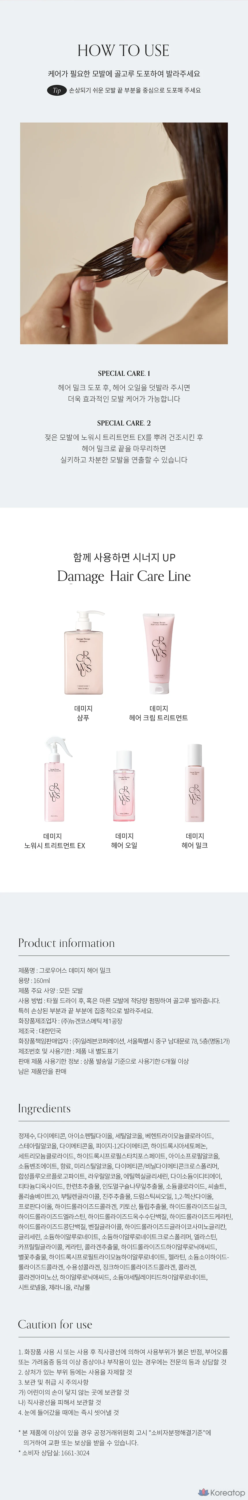 Молочко для поврежденных волос GROWUS, 1 шт., 160 мл