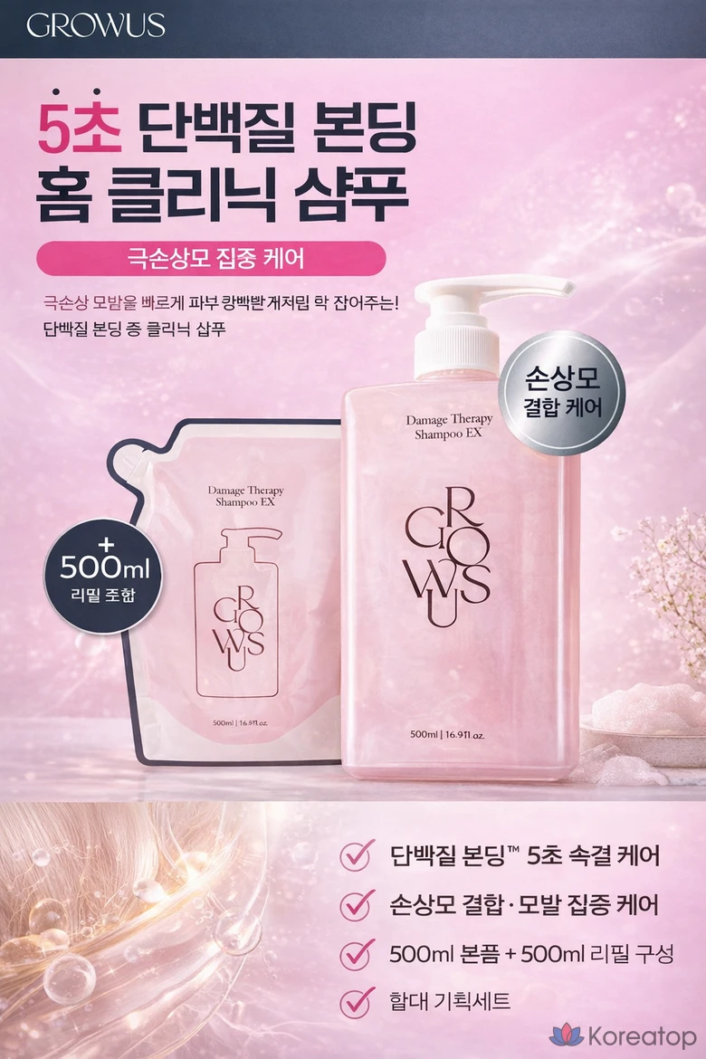 Сменный блок шампуня GROWUS Damage Therapy, 1 шт., 500 мл.
