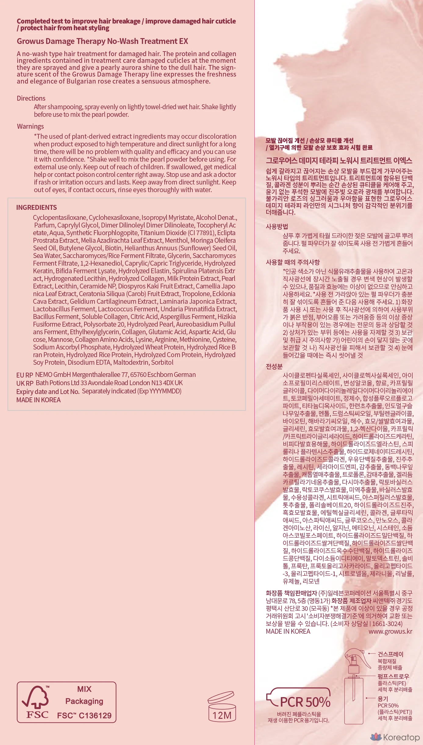 Средство для обработки растений GROWUS Damage Therapy No-Wash Treatment EX, 250 мл, 1 шт.