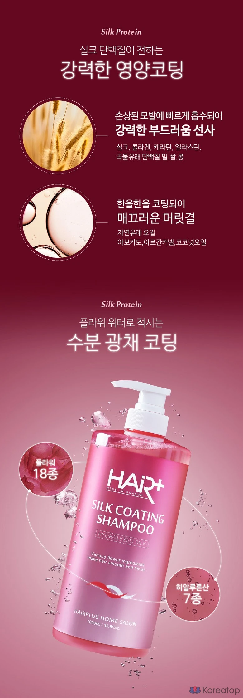 Шампунь Hair Plus Silk Coating 1000 мл + средство для ухода 50 мл, 1 шт.