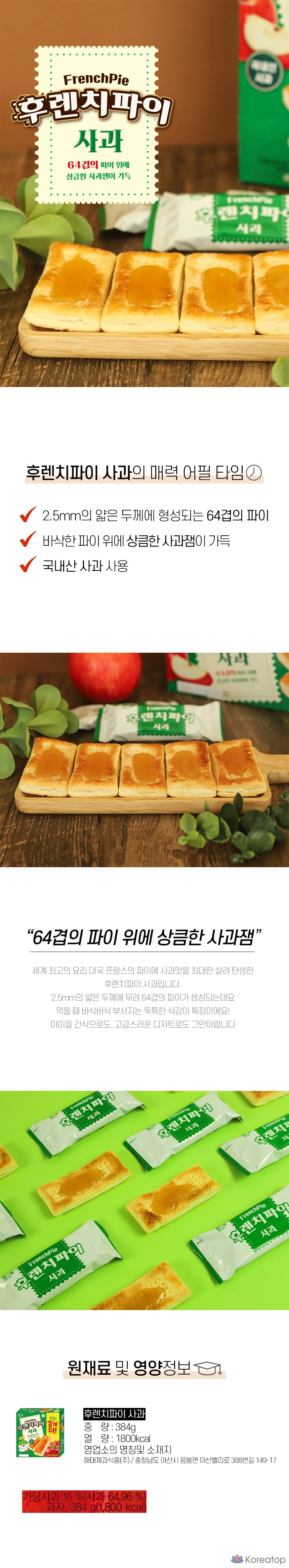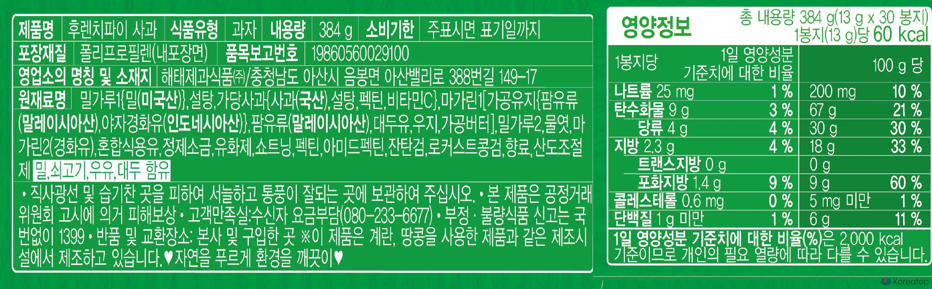 Французский яблочный пирог от Haitai Confectionery — это изысканное сочетание хрустящей текстуры и нежной яблочной начинки. Этот пирог идеально подходит для тех, кто ценит натуральные ингредиенты и классический французский стиль. Удобная упаковка позволяет наслаждаться вкусом в любое время и в любом месте. Пирог станет отличным дополнением к вашему чаепитию или легким перекусом в течение дня. 🍏