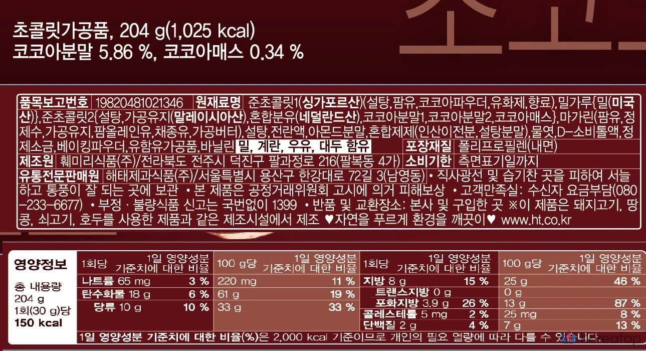 Шоколадный крем Haitai Confectionery Sablé
