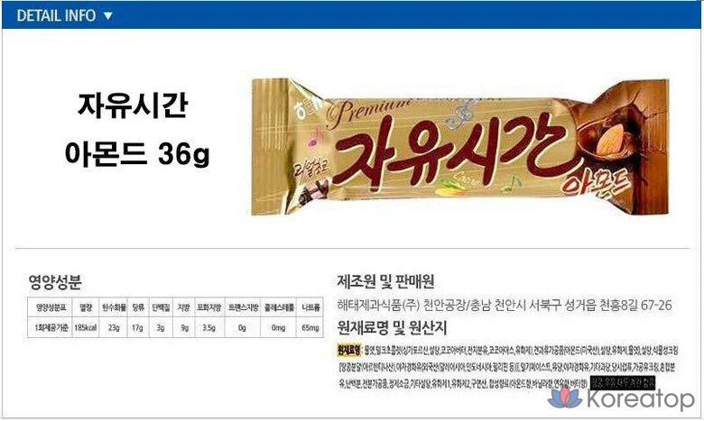 Миндальный шоколадный батончик Haitai Free Time