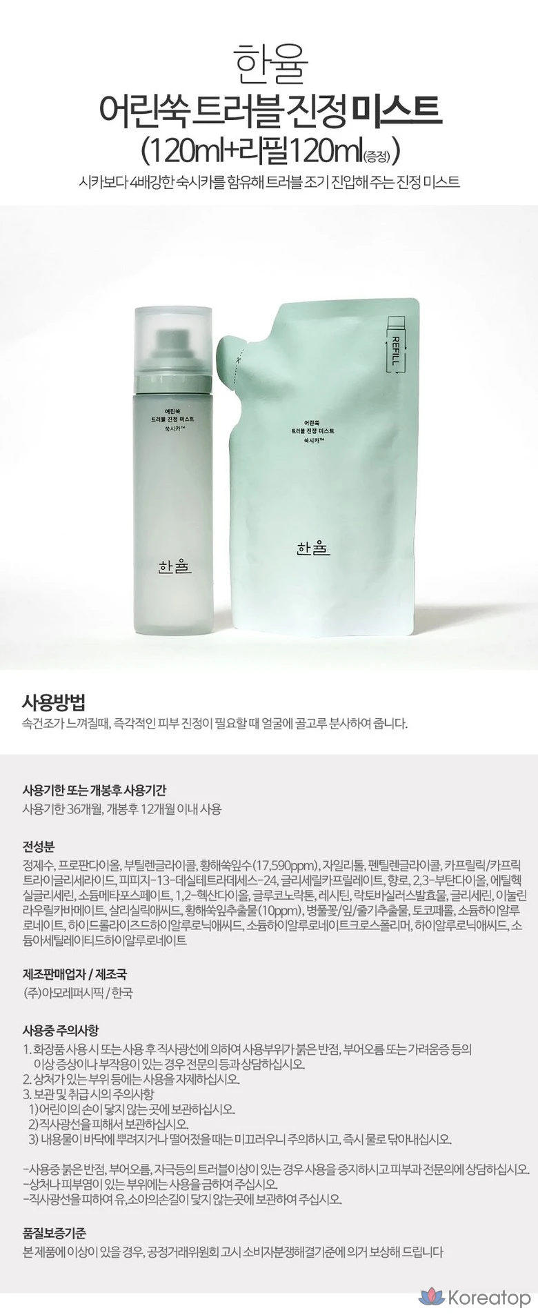Успокаивающий спрей для лица HANYUL Young Artemisia Trouble Soothing Mist Planning, 120 мл + сменный блок 120 мл, 1 шт.