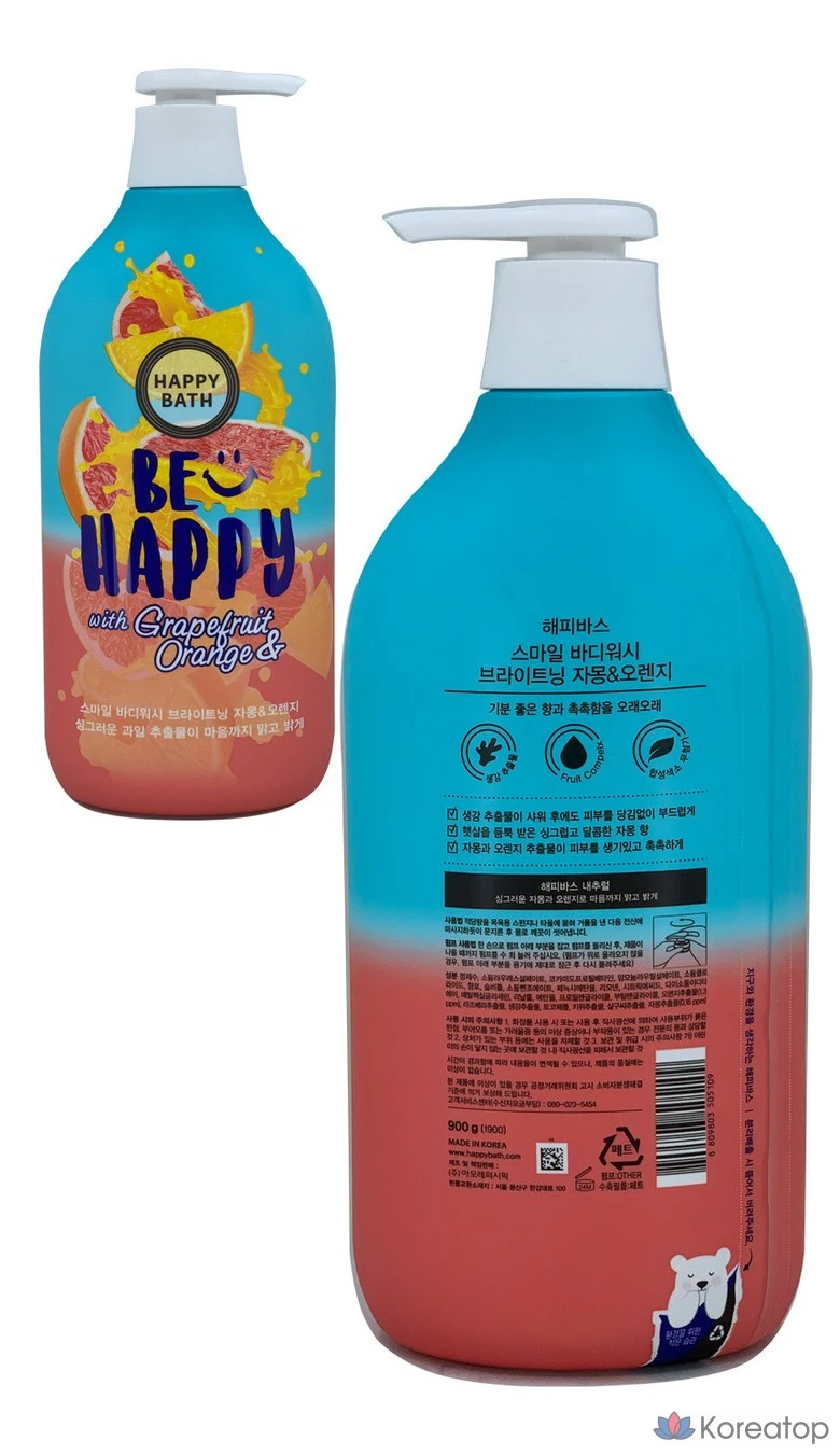 Гель для душа Happy Bath Brightening с грейпфрутом и апельсином, 900 мл, 1 шт.