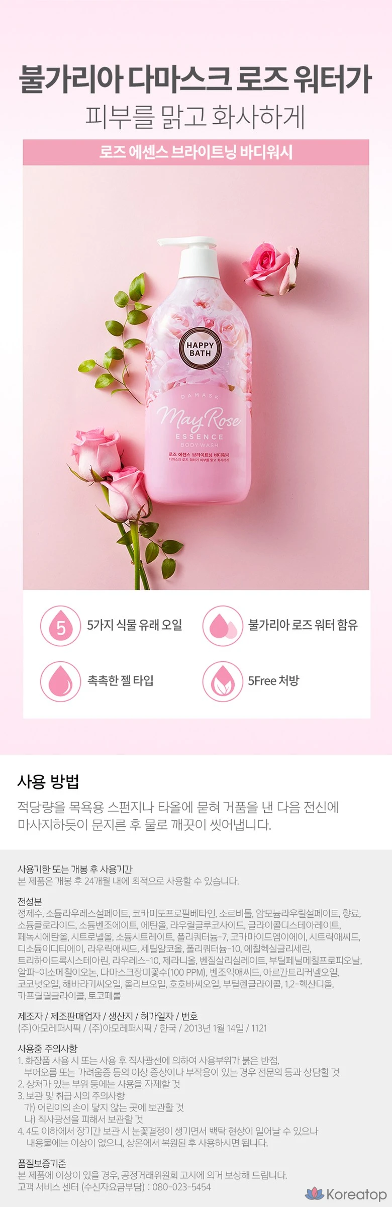 Гель для душа Happy Bath Rose Essence Brightening Body Wash, цветочный аромат, 900 г, 1 шт.