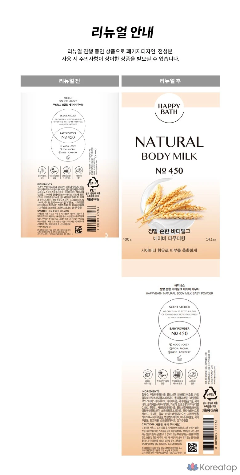 Happy Bath Really Mild Body Milk Lotion Baby Powder, 400g, 1ea