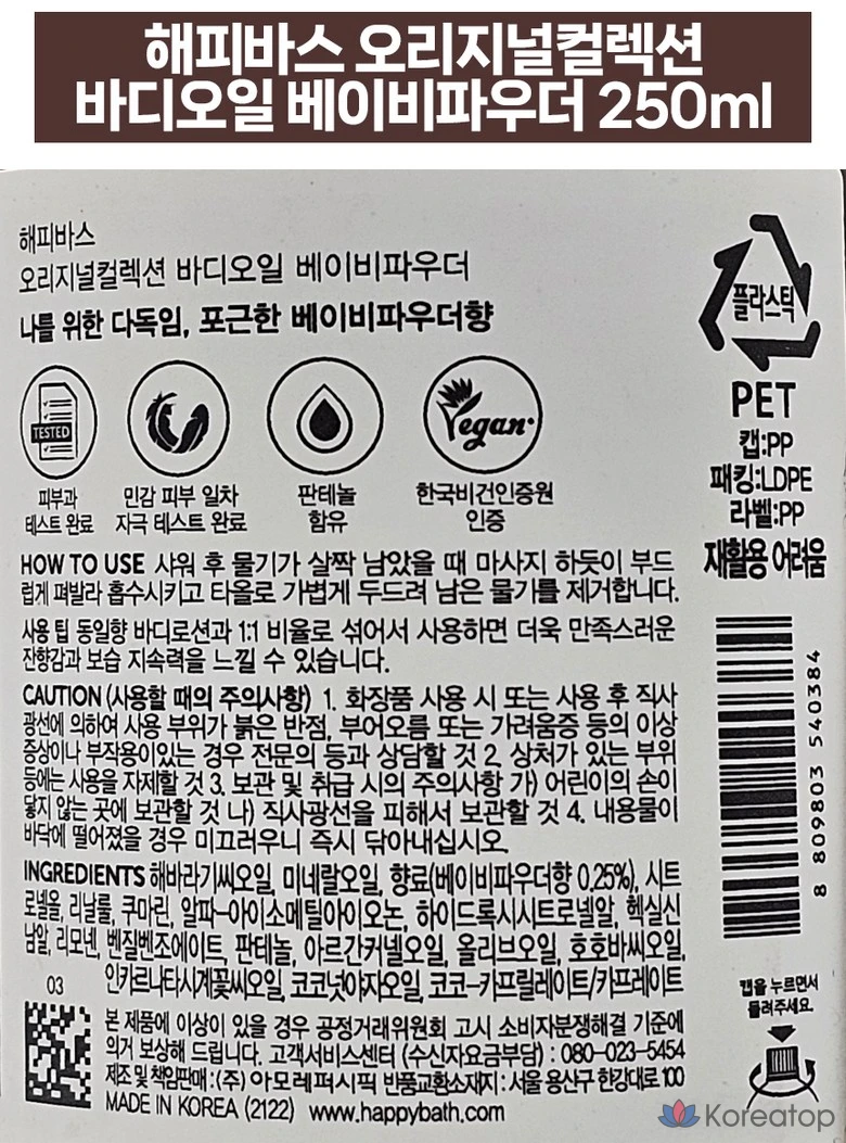 Масло для тела Happy Bath Original Collection с детской присыпкой, 250 мл, 1 шт.
