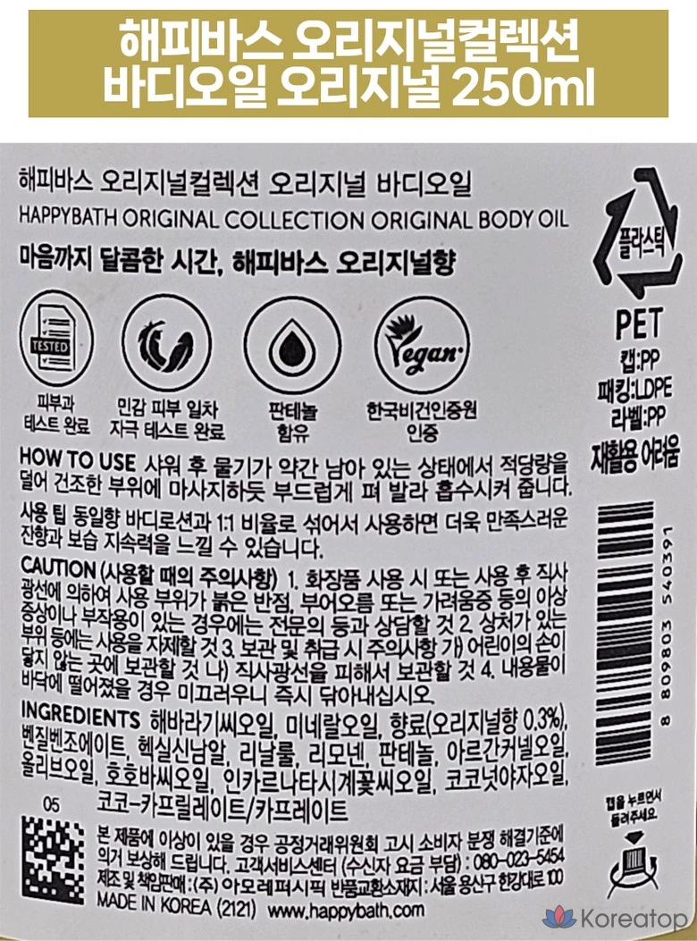 Масло для тела Happy Bath Original Collection с оригинальным ароматом, 250 мл, 1 шт.