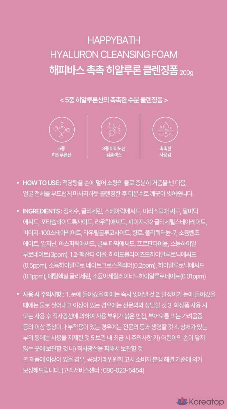 Очищающая пенка для лица Happy Bath Moist с гиалуроновой кислотой, 200 г, 1 шт.