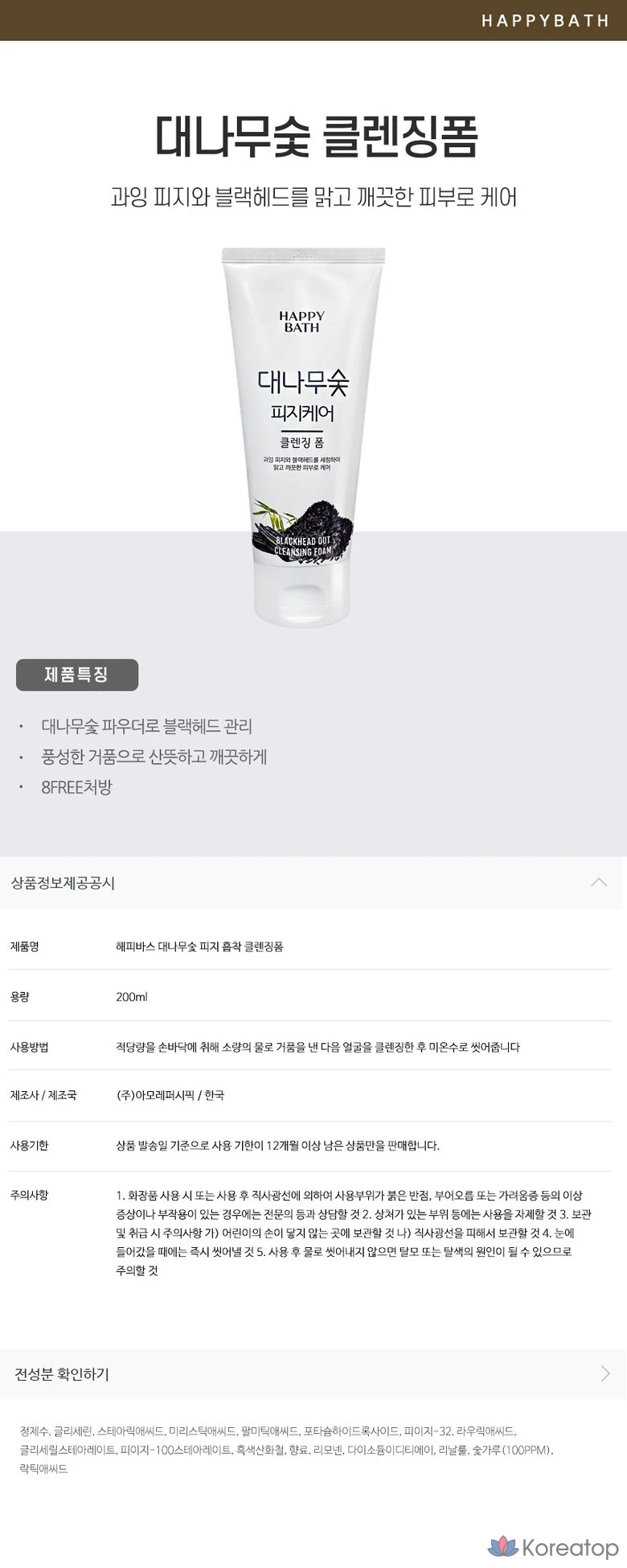 Очищающая пенка для лица Happy Bath с бамбуковым углем, 200 мл, 1 шт.