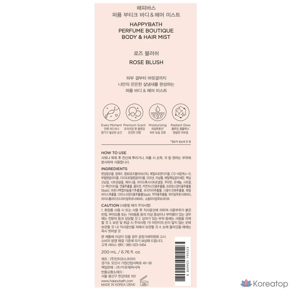 Парфюмерный спрей для тела и волос Happy Bath Perfume Boutique «Роза и румяна», 200 мл, 1 шт.