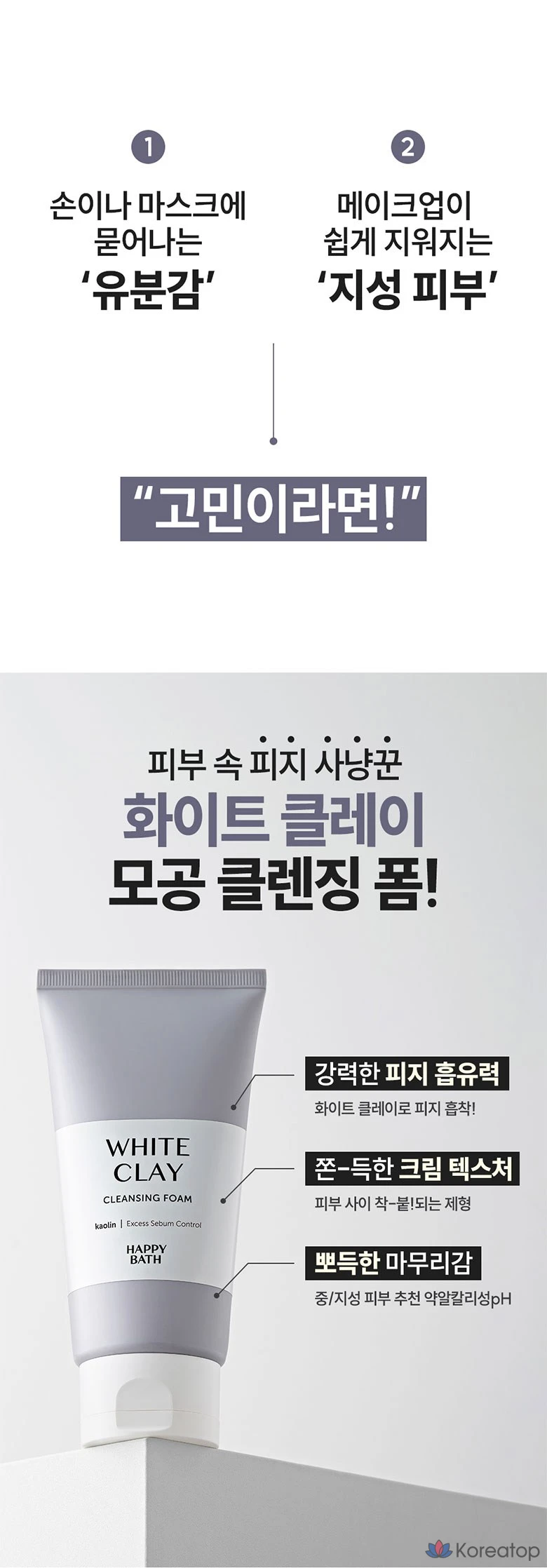 Пенка для очищения пор Happy Bath White Clay