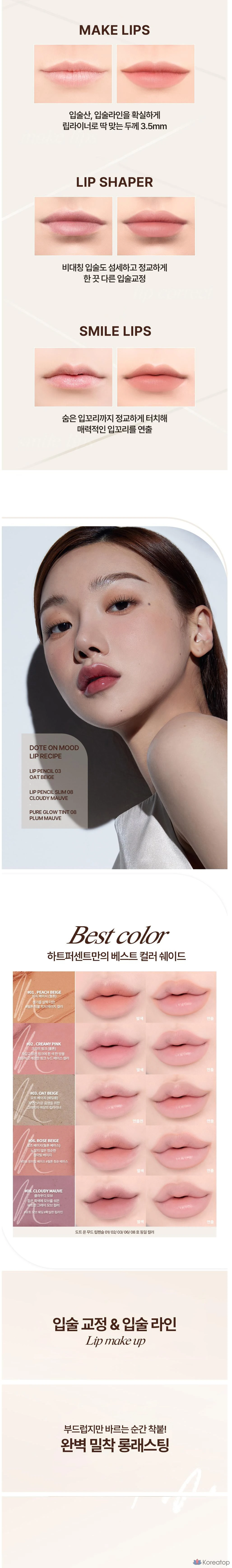 Тонкий карандаш для губ Heart percent Dot On Mood, оттенок 02, кремово-розовый, 1 шт.