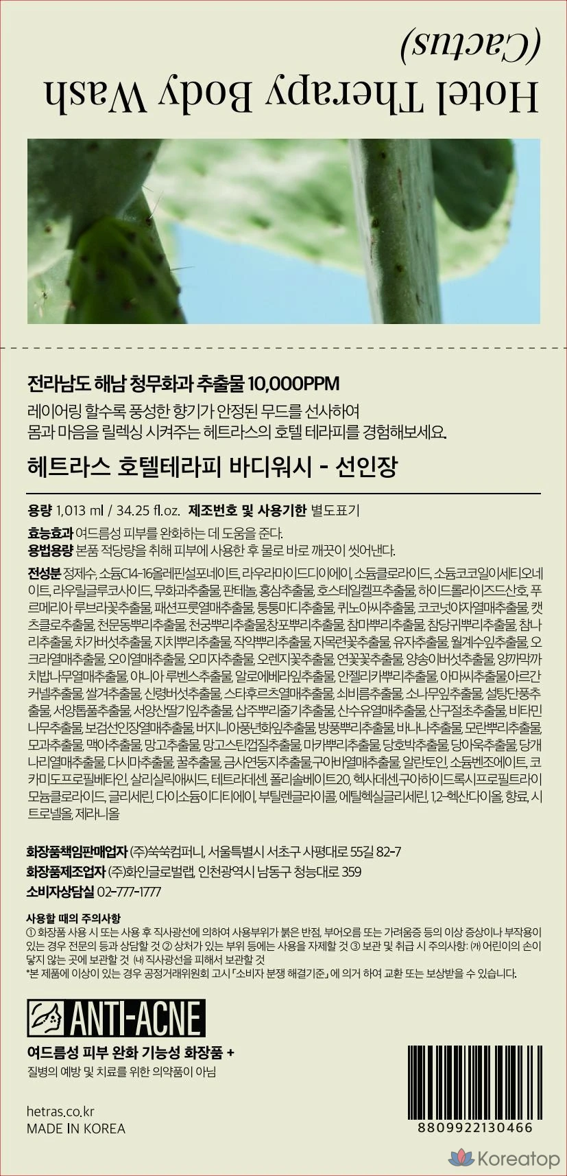Гель для душа HETRAS Hotel Therapy, цвет «Кактус», 1,013 л, 1 шт.