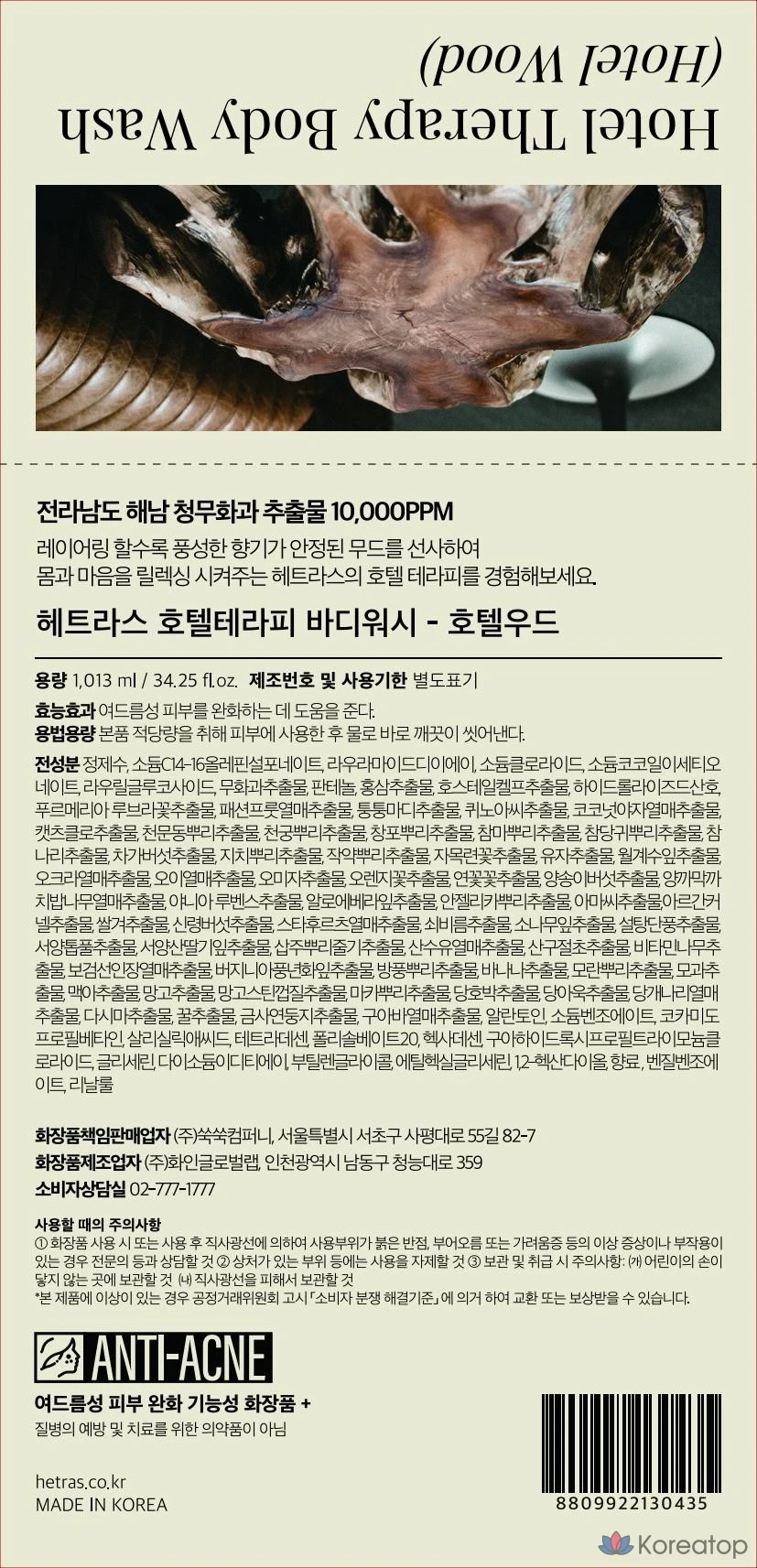 Гель для душа HETRAS Hotel Therapy, деревянный, 1,013 л, 1 шт.