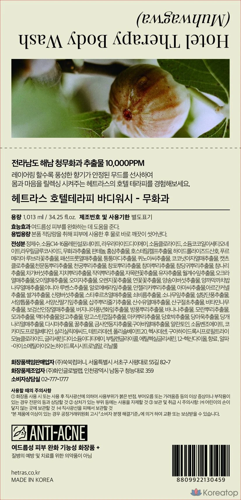 Гель для душа HETRAS Hotel Therapy с экстрактом инжира, 1,013 л, 1 шт.